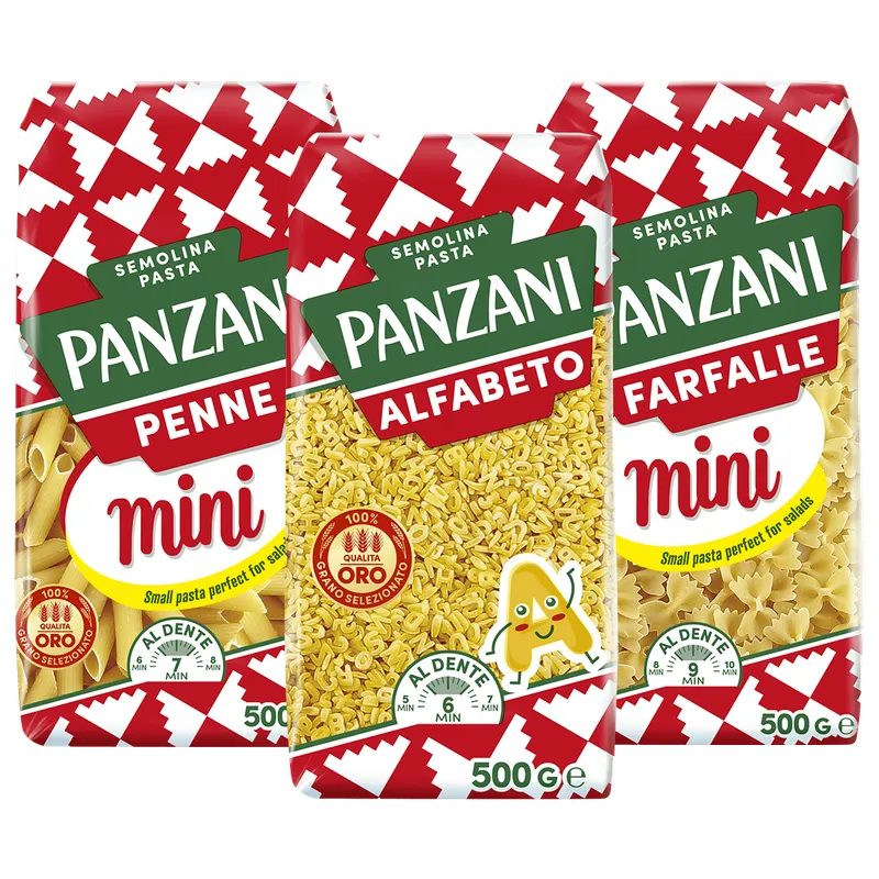 بانزاني ميني باستاهي الحل الأمثل للذواقة محبي كميات الطعام الصغيرة. فحجمها المرح يعني أنها يمكن أن تناسب كل الأوقات،مع الحفاظ على الجودة والنكهة التي لا لبس فيها لمعكرونة بانزاني. مثالي للأطباق السريعة واللذيذة!