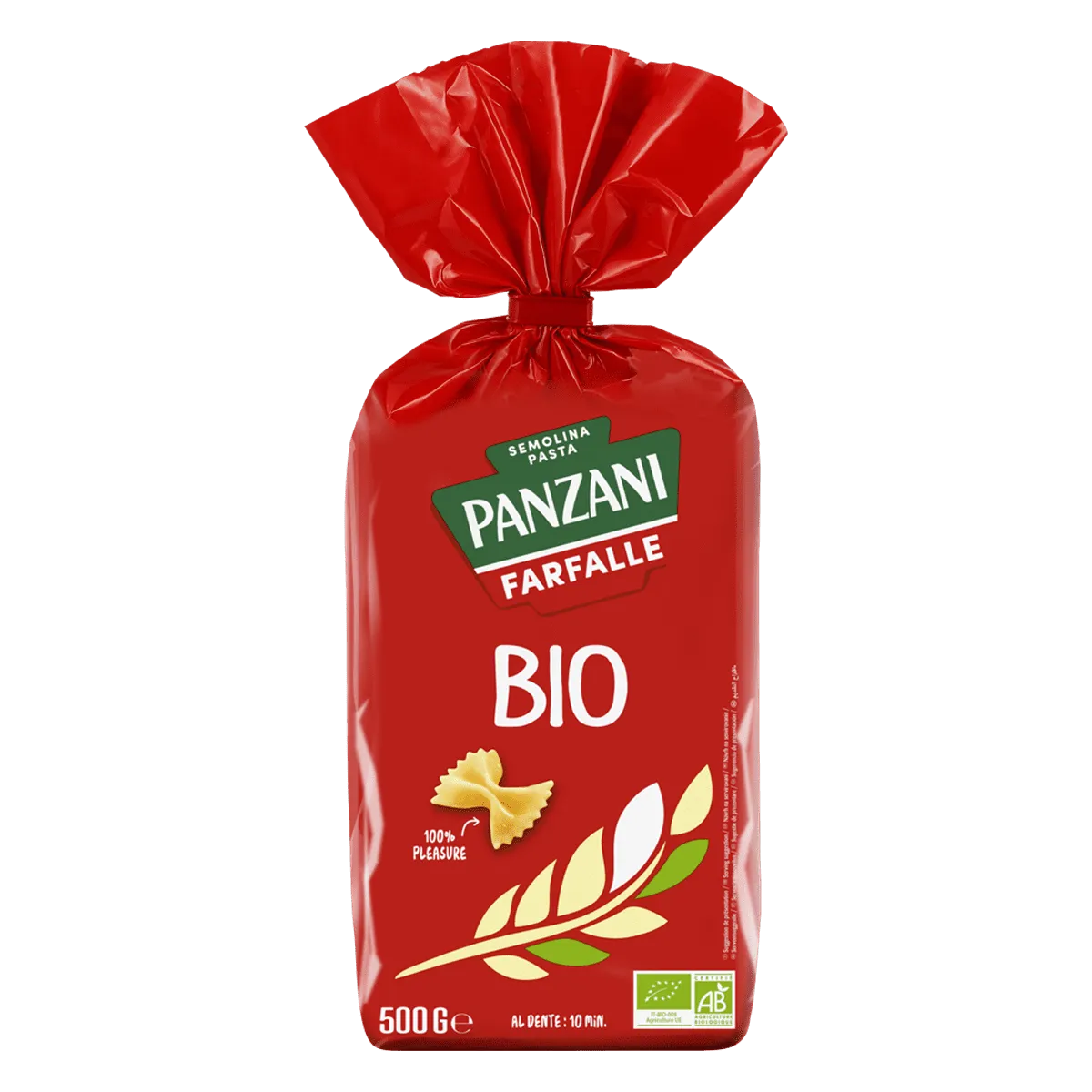 بالشعار العضوي للاتحاد الأوروبي، تضمن لك بانزاني أن المعكرونة مُعدة من القمح العضوي وفقًا لمواصفات صارمة تحافظ على جودة المكونات
