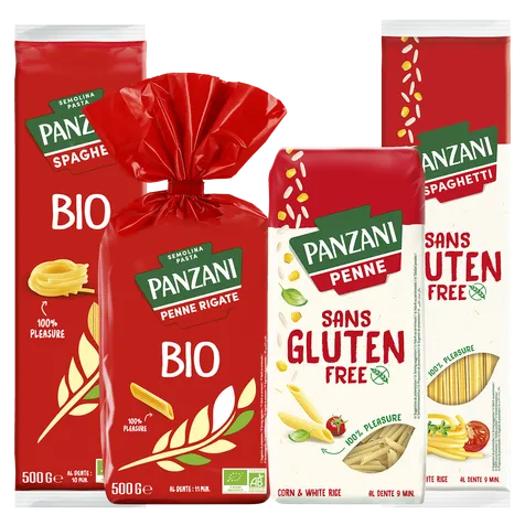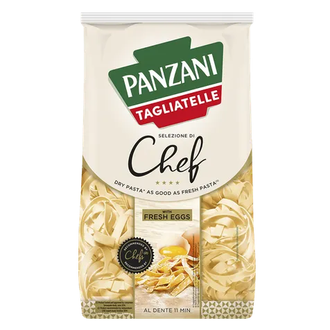 في بانزاني، نحن ملتزمون بتقديم معكرونة عالية الجودة بفضل اختيار أجود أنواع القمح القاسي، وهو مكون أساسي في صنع المعكرونة. نحن نحرص بشدة على التأكد من أن المعكرونة لدينا متماسكة وتذوب في الفم وتُطهى بشكل مثالي.