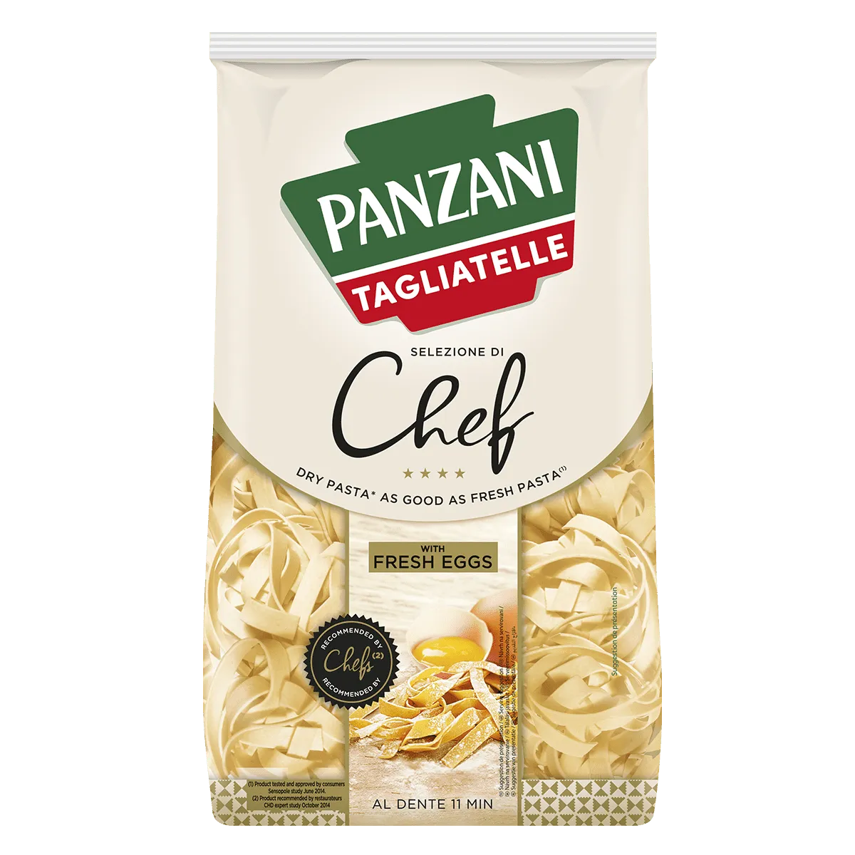معكرونة تالياتيلّي من بانزاني معروفة بمذاقها الشهي الذي لا يُقاوَم. معكرونة على شكل شرائط جميلة لتضفي لمسة مبهجة إلى أطباقك!تُستخدم معكرونة تالياتيلّي في عدد لا حصر له من الوصفات الإيطالية. فهي الخيار الأمثل للتقديم مع جميع أنواع الصلصات.